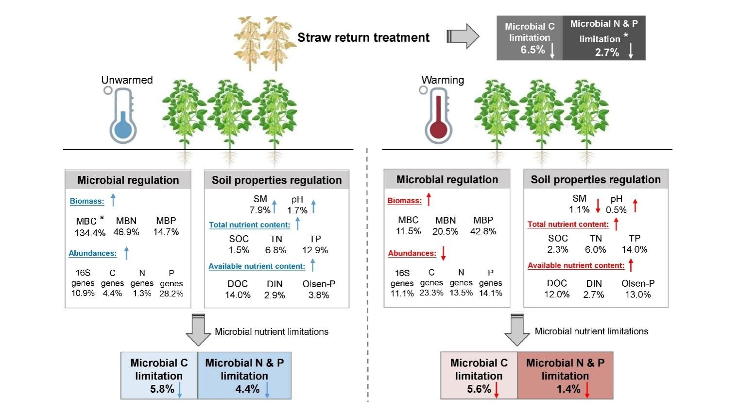 東北地理所在增溫和秸稈還田耦合對黑土農(nóng)田土壤微生物養(yǎng)分限制的影響機制方面取得進展