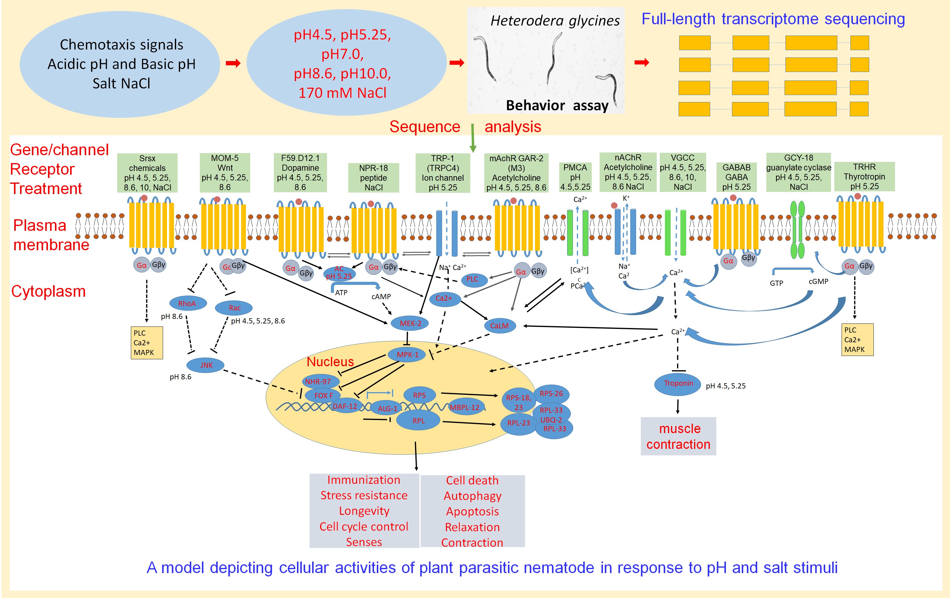 圖2 調(diào)控大豆孢囊線蟲響應(yīng)pH和NaCl的細(xì)胞模型