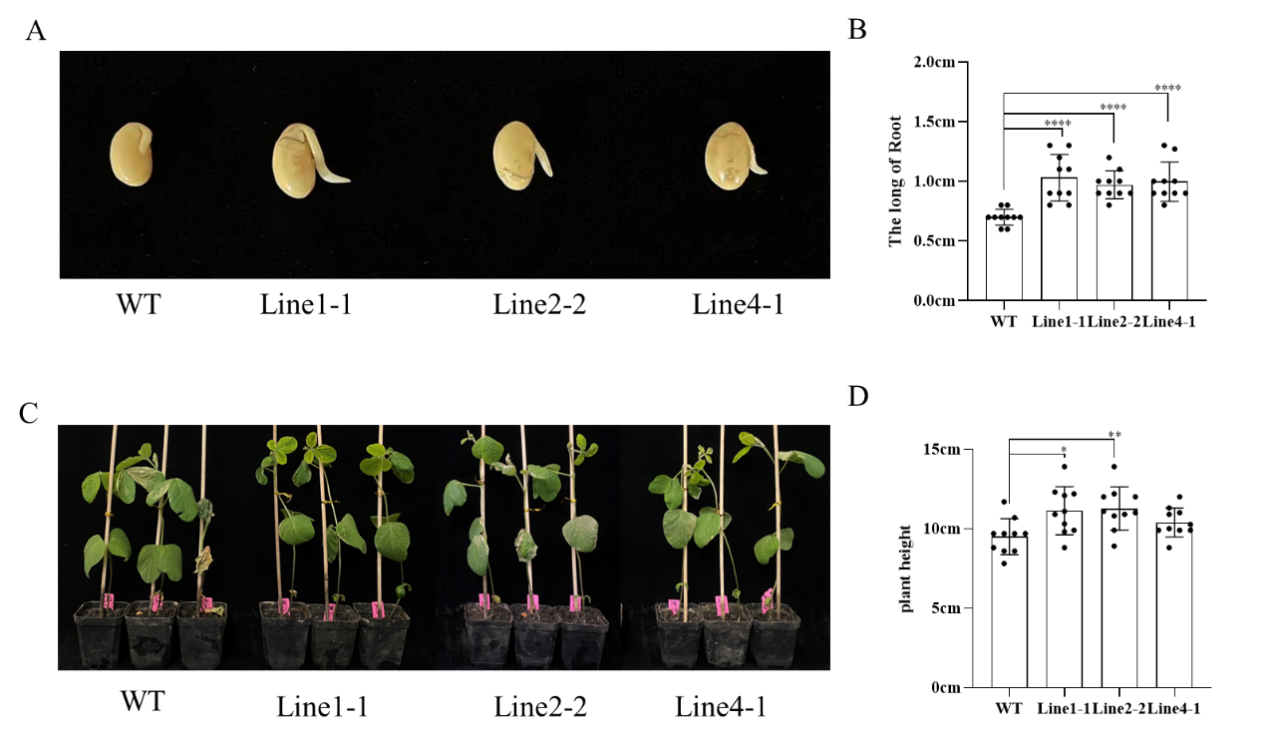 圖1. 過表達AhALDH2B6基因提高大豆芽期和苗期低溫耐受性