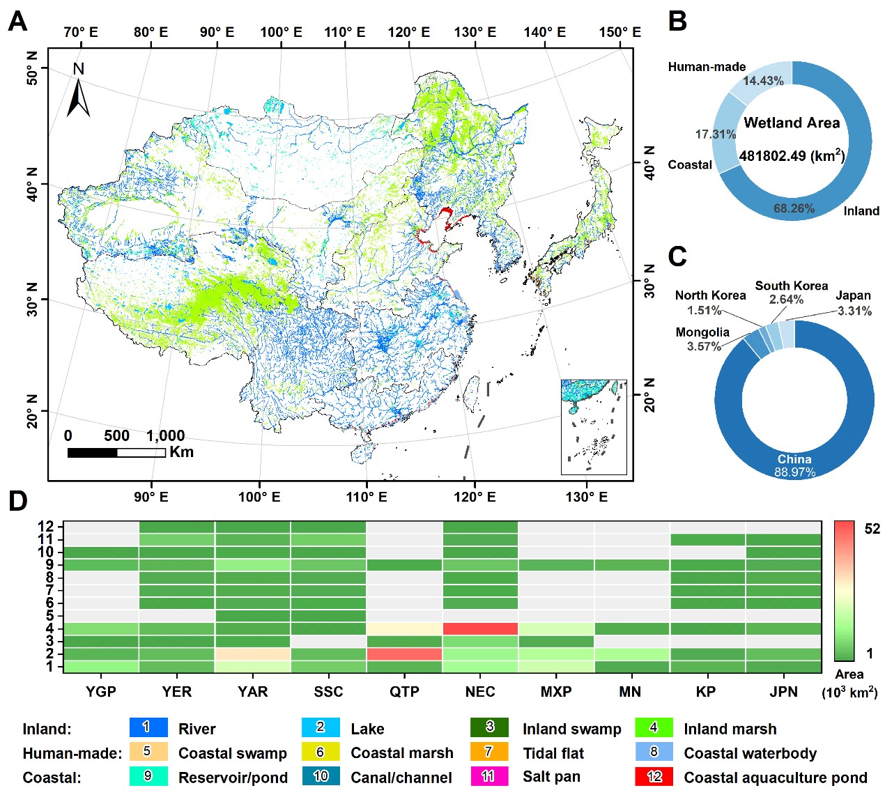 圖2 2021年東亞地區(qū)濕地空間分布特征