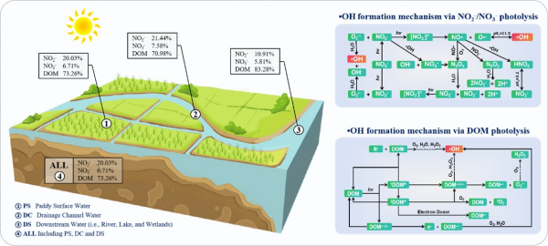 鹽堿地開發是緩解耕地資源短缺和實現糧食增產的重要途徑。水稻種植是鹽堿地農業利用最主要的方式之一,但稻田的洗鹽排水過程會排放大量鹽堿離子、氮磷營養鹽等物質進入溝渠和下游河湖水體,對區域水生態安全造成威脅。活性中間體(RIs)在生態系統養分循環和污染物遷移轉化過程中發揮著關鍵作用,但其在鹽堿化農業水體中的生成過程與機制尚不清楚,限制了對鹽堿化地區農業水體中復雜污染物生物地球化學過程的理解。