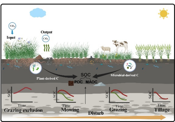草地生態(tài)系統(tǒng)是陸地碳循環(huán)的重要組成部分,其土壤中儲(chǔ)存著全球草地碳匯90%以上的碳量。在全球變化背景下,人類活動(dòng)導(dǎo)致的土地利用變化已被證實(shí)是驅(qū)動(dòng)土壤有機(jī)碳(SOC)變化的關(guān)鍵因素,貢獻(xiàn)了約25%的全球二氧化碳排放量。然而,通過(guò)科學(xué)的管理措施,可以有效控制這種碳損失。不同草地利用方式對(duì)土壤碳庫(kù)的影響途徑復(fù)雜多樣。為最大化提升草地生態(tài)系統(tǒng)的碳封存潛力,亟需深化對(duì)不同利用模式下草地土壤碳庫(kù)動(dòng)態(tài)的研究。