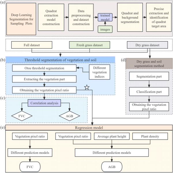 準(zhǔn)確、高效地監(jiān)測草地覆蓋度(FVC)和地上生物量(AGB)兩項(xiàng)核心生態(tài)指標(biāo),是科學(xué)診斷草甸草原退化程度、評(píng)估生態(tài)系統(tǒng)恢復(fù)力、制定精準(zhǔn)恢復(fù)與管理策略的關(guān)鍵基礎(chǔ)。傳統(tǒng)依賴人工野外調(diào)查的方法周期長、覆蓋范圍有限。近年來,“天空地一體化”監(jiān)測體系的發(fā)展顯著提升了草地退化監(jiān)測的速度與準(zhǔn)確性。然而,發(fā)展高效、精準(zhǔn)、低成本的無損監(jiān)測技術(shù)仍是提升生態(tài)系統(tǒng)管理科學(xué)化水平的迫切需求。