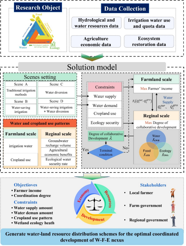 該研究開發(fā)的雙尺度(區(qū)域和農(nóng)場(chǎng))的多目標(biāo)規(guī)劃模型能夠有效協(xié)調(diào)區(qū)域管理者和農(nóng)民之間的利益沖突,同時(shí)考慮氣候變化對(duì)水資源的影響,可為全球其他面臨類似挑戰(zhàn)的地區(qū)提供參考,助力實(shí)現(xiàn)水資源、糧食安全和生態(tài)系統(tǒng)保護(hù)的協(xié)同可持續(xù)發(fā)展。