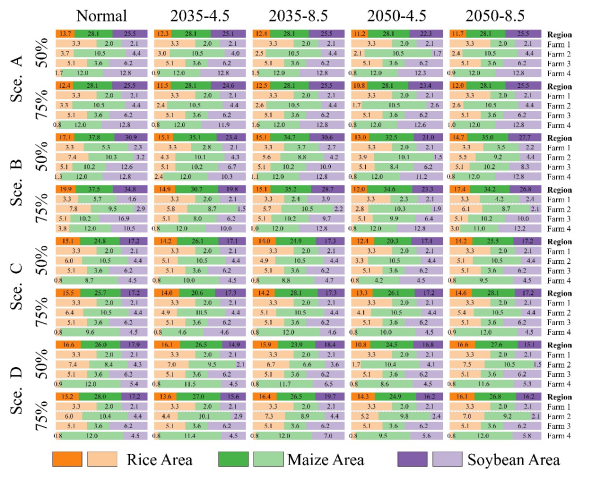 圖 3.不同情景下農(nóng)田利用的最佳結(jié)果