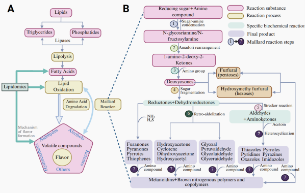圖1脂質熱降解機理(A)和美拉德反應過程(B)