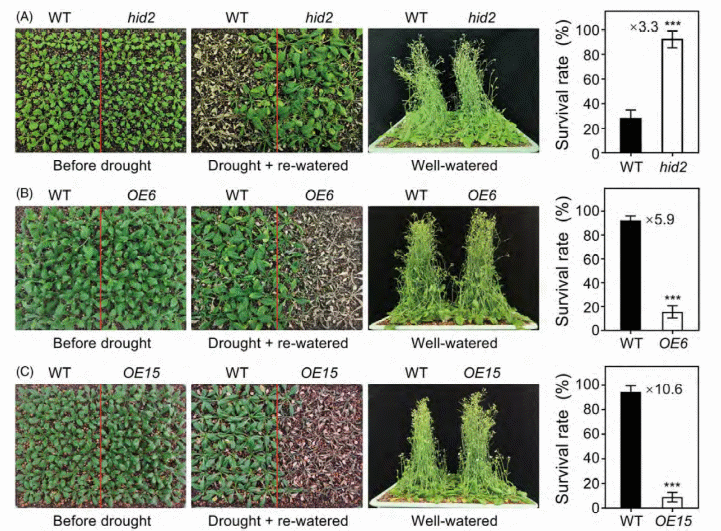 圖1. HID2負(fù)向調(diào)控擬南芥耐旱性的生理表型