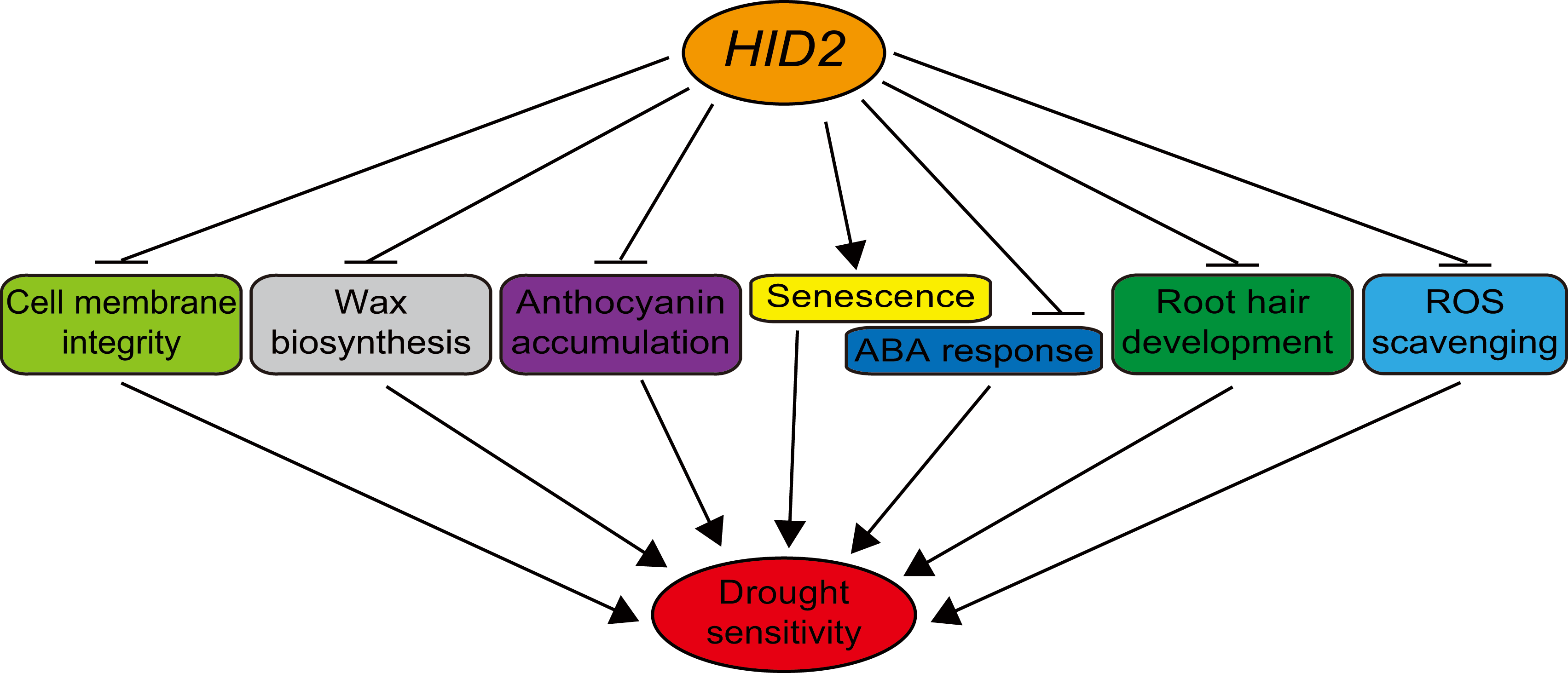 圖2. HID2負(fù)向調(diào)控擬南芥耐旱性的分子機制