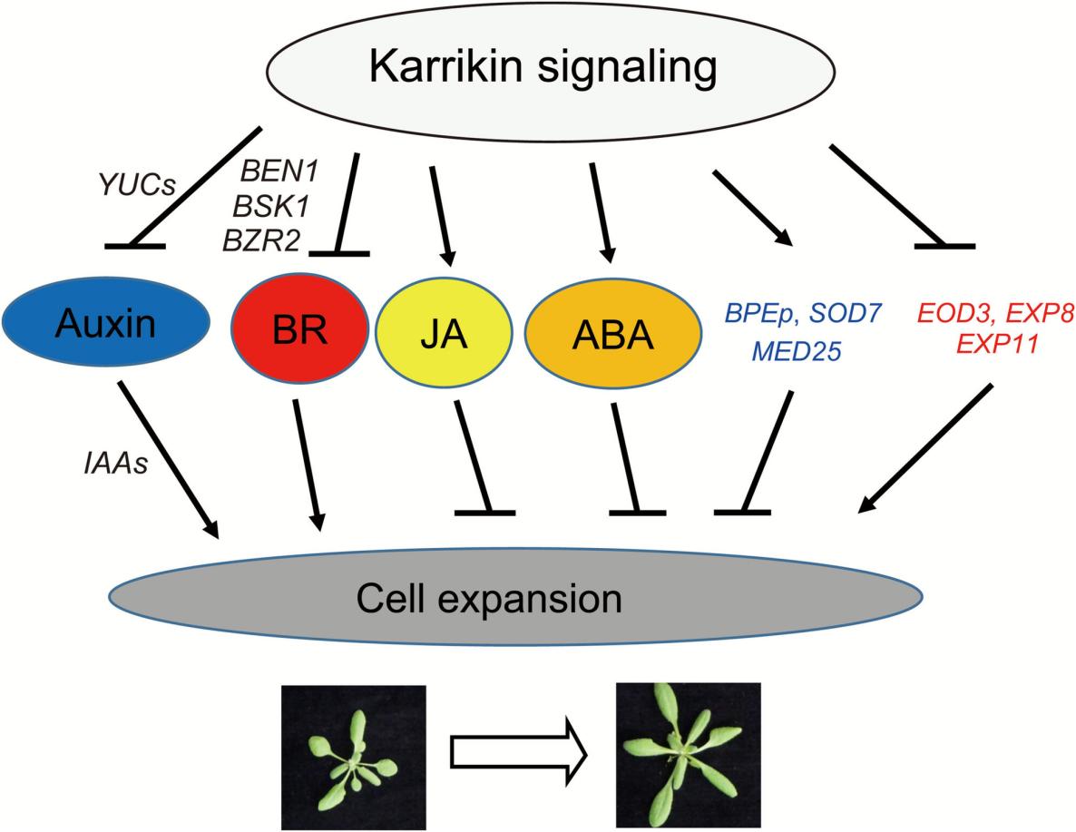 圖4. 擬南芥KAR信號通路調(diào)控蓮座葉大小的機制模型
