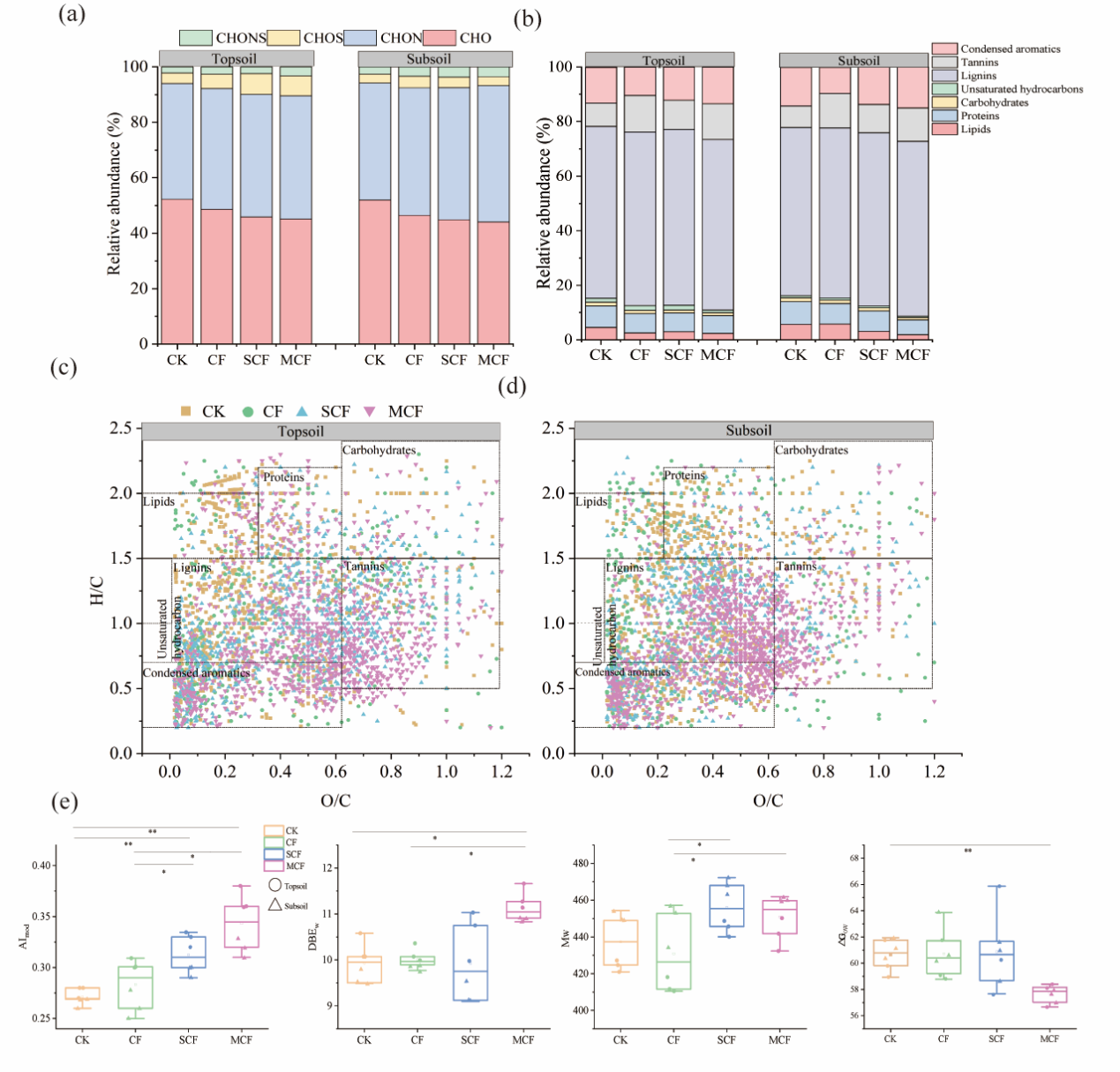圖1 長(zhǎng)期有機(jī)物料還田下黑土DOM的分子結(jié)構(gòu)變化