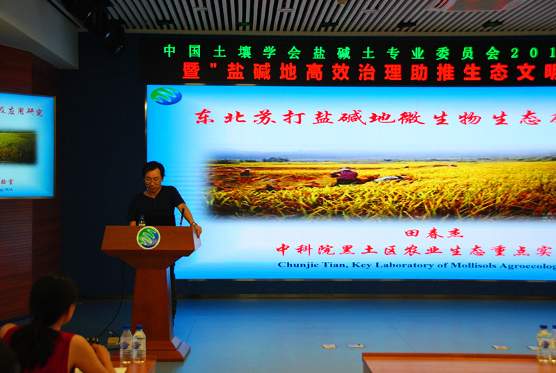 18日下午,來自國內的13位從事鹽堿地研究工作的知名專家做了特邀專題報告。中國科學院新疆生態與地理研究所田長彥研究員,中國科學院南京土壤研究所楊勁松研究員,中國科學院遺傳與發育生物學研究所劉小京研究員,中國科學院地理科學與資源研究所康躍虎研究員,清華大學能源與動力工程系王淑娟教授,西北工業大學應用化學系寧榮昌教授,中南大學薛生國教授,中國農業科學院農業資源與農業區劃研究所程憲國研究員、魯東大學資源與環境工程學院傅金民教授,以及中國科學院東北地理與農業生態研究所王志春研究員、趙凱研究員、田春杰研究員和梁正偉研究員等圍繞我國西北新疆鹽堿地、河套平原鹽堿地、濱海灘涂鹽堿地及中低產田,東北松嫩平原鹽堿地治理研究進展與系統解決方案,以及微波遙感、土壤微生物、生物刺激素等新方法、新技術、新產品在鹽堿地治理上的應用等分別做了專題學術報告。