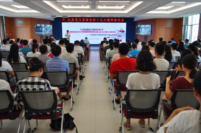 陳耀輝以《不忘初心 牢記使命 奪取新時代中國特色社會主義偉大勝利——認真學習貫徹黨的十九大精神》為題,緊緊圍繞黨的十九大主題和發展成果、習近平新時代中國特色社會主義思想、過去五年的歷史性成就和歷史性變革、中國特色社會主義進入新時代、我國社會主要矛盾的變化、兩個一百年奮斗目標的戰略部署、堅定新時代的文化自信、全面從嚴治黨等八個大的方面,對黨的十九大精神進行了詳細解讀,報告內容翔實,案例豐富,與實際生活聯系緊密,深刻闡釋了黨的十九大提出的一系列重要思想、重要觀點、重大論斷、重大舉措。報告站位高、解讀透、信息量大、系統深入,圍繞十九大精神“不忘初心、牢記使命”這一主題,生動闡述了中國共產黨在長期奮斗中形成的“為中國人民謀幸福,為中華民族謀復興”的初心和使命,對全所深入學習貫徹十九大精神,推動科技創新工作必將產生積極的促進作用。