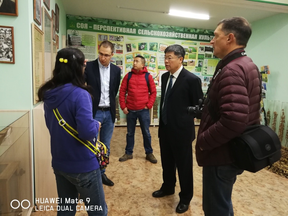 10月11日,代表團一行訪問了俄羅斯農業科學院全俄大豆科學研究所。該所首席研究顧問、所科研負責人Sinegovskii Mikhail Olegovich博士介紹了該所情況,重點介紹了其在大豆育種、大豆抗寒、大豆品質鑒定等方面研究和工作情況。蘇陽書記向Sinegovskii Mikhail Olegovich博士詳細了解了該所農業科技成果轉化和推廣的相關工作,介紹了東北地理所在大豆育種方面的研究進展與取得的重要成果。雙方表達了希望能發揮各自積累,探討和深入合作的愿望。全俄農科院大豆研究所是俄羅斯開展大豆研究的最重要的國家科學研究機構,設有11個實驗室,擁有試驗農場15000 公頃。在大豆育種、生物栽培技術、根際微生物和大豆加工等方面擁有雄厚的實力,同時還為國家提供農產品安全檢測。此次是東北地理所與其開展的首次官方交流,為雙方科學家建立聯系與探討深入合作了奠定基礎。
