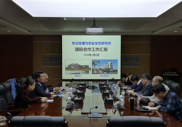2020年1月6日,市貿促會會長徐懷武、副會長溫淞文和部長王冬梅一行到東北地理所調研會展情況。東北地理所黨委書記蘇陽,科研計劃處處長武海濤、副處長崔明星、綜合辦公室副主任王明全和黑土區(qū)農業(yè)生態(tài)重點實驗室研究員王志春參加座談。