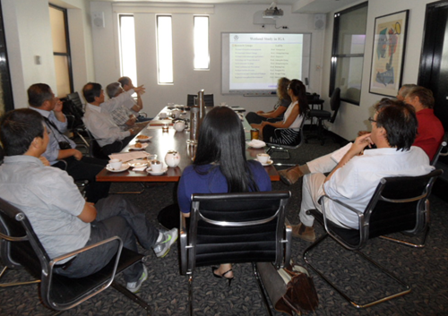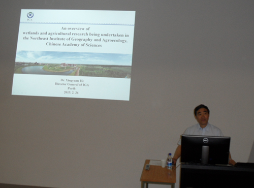 CSIRO水土研究部西澳地區(qū)負責人Don McFarlane博士,主持了每周例行的學術(shù)報告會,何所長應(yīng)邀做主題發(fā)言,全面介紹了我所的整體架構(gòu)和主要研究領(lǐng)域,特別是幾年來在濕地科學和農(nóng)業(yè)相關(guān)重點方向取得的研究進展和成果。報告之后,與會學者就有關(guān)干旱、鹽漬化、抗逆植物種質(zhì)資源等共性問題進行了深入交流。報告中,何所長還回顧了我所與CSIRO水土研究部的合作歷史,會見了澳方合作專家Riasat Ali博士。McFarlane博士等專家表達了繼續(xù)與我所開展相關(guān)領(lǐng)域的國際合作研究的意愿。