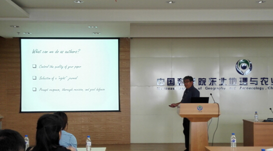 7月2日上午,胥教授作了題為“How to quickly publish your research in SCI-indexed journals?”的SCI論文寫作技能指導(dǎo)報(bào)告,報(bào)告會由水文與水資源學(xué)科組章光新研究員主持。胥教授從論文期刊選定、投稿流程、評審環(huán)節(jié)、論文架構(gòu)、寫作技巧、注意事項(xiàng)以及論文返修等多個方面向大家進(jìn)行了深入系統(tǒng)的講解。指出了目前中國學(xué)者在SCI論文寫作方面存在的普遍弱點(diǎn),并分別從科學(xué)選題、問題的提出和假設(shè)、結(jié)果的討論、結(jié)論的總結(jié)、摘要的架構(gòu)等方面,針對一些典型投稿案例做出了具體而生動的示例分析。這次報(bào)告受到了我所師生熱烈好評,對于大家提高論文寫作水平、高效發(fā)表科研論文以及提升科研成果的學(xué)術(shù)影響力具有非常重要的實(shí)際指導(dǎo)意義。