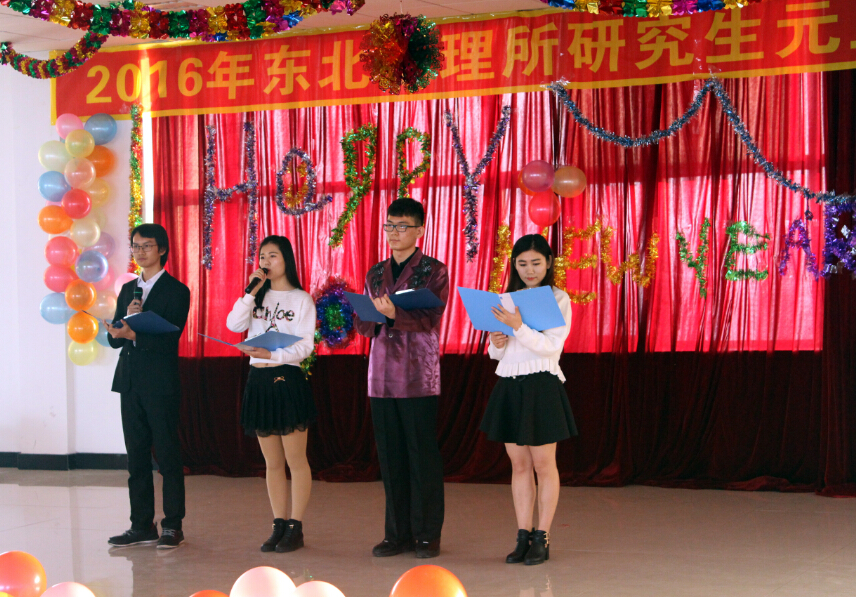 2015年12月30日下午,由研究生部主辦、研究生會承辦,以“青春韶華,炫彩東地”為主題的2016年研究生元旦聯歡會于餐廳二樓舉行。所黨委書記蘇陽、副所長李秀軍、紀委副書記邵慶春、人教處副處長郭琳、研究生部主任王玉榮、研究生部侯雪瑩、吳秋菊及全體研究生和部分青年職工參加了此次聯歡會。