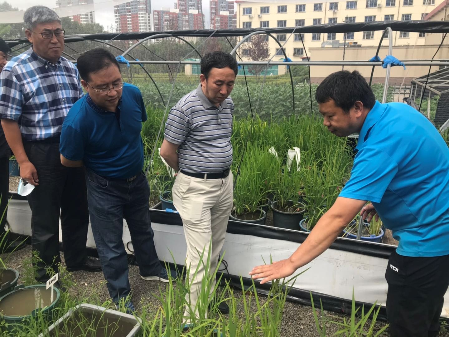 7月20日上午,中國(guó)科學(xué)院長(zhǎng)春分院院長(zhǎng)甘建國(guó)、科研處處長(zhǎng)侯鵬、副處長(zhǎng)彥飛等一行6人到東北地理所哈爾濱所區(qū)試驗(yàn)地、試驗(yàn)場(chǎng)和溫室大棚開(kāi)展深入調(diào)研,聽(tīng)取了大豆分子設(shè)計(jì)育種、水稻分子育種、林下植物資源等學(xué)科組一線科研人員的現(xiàn)場(chǎng)匯報(bào),查看了學(xué)科組的科研工作和最新成果,并與科研人員就成果轉(zhuǎn)化、技術(shù)創(chuàng)新、院地合作等內(nèi)容進(jìn)行了深入交流。甘建國(guó)指出,哈爾濱所區(qū)的工作很有特色,很符合地方發(fā)展需求,要加強(qiáng)科技宣傳和成果推廣工作;爭(zhēng)取哈爾濱市支持,在城區(qū)周邊建設(shè)實(shí)驗(yàn)示范基地,擴(kuò)大服務(wù)地方農(nóng)業(yè)的能力和影響力。