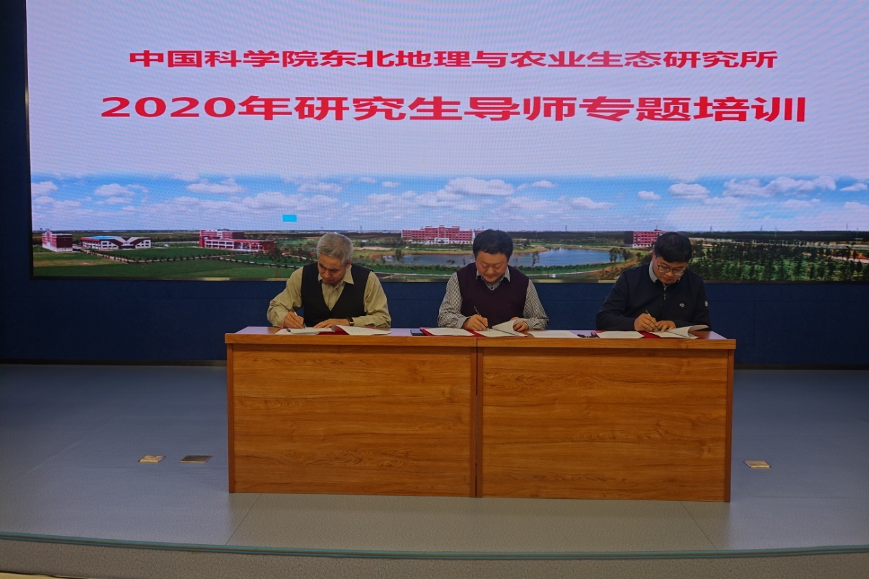 王玉榮向與會(huì)導(dǎo)師宣讀了《中國科學(xué)院東北地理與農(nóng)業(yè)生態(tài)研究所立德樹人崗位責(zé)任書》,姜明、李秀軍和武海濤作為導(dǎo)師代表率先簽訂了責(zé)任書,參會(huì)導(dǎo)師集體簽訂責(zé)任書,本次培訓(xùn)會(huì)圓滿結(jié)束。