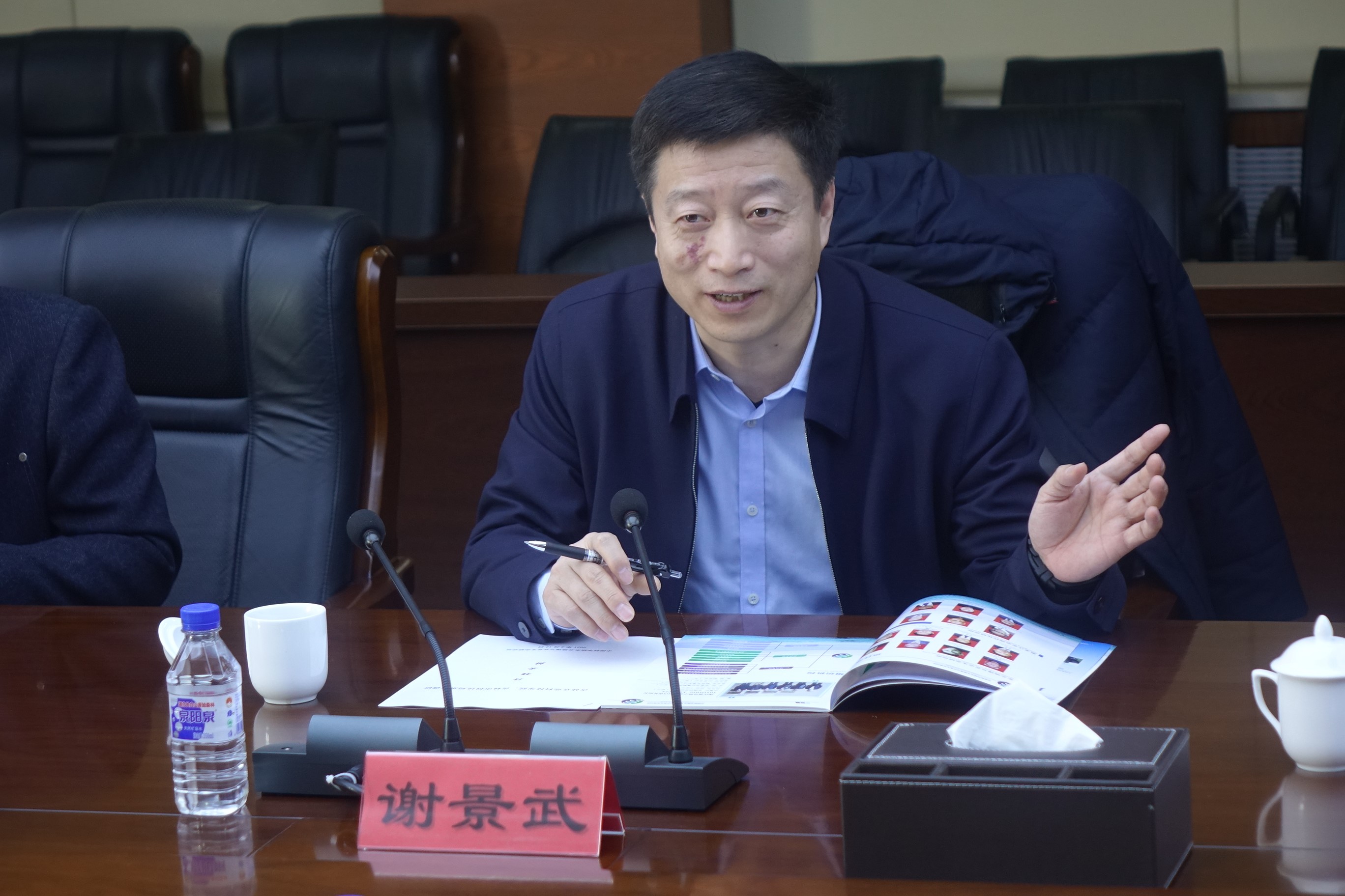 東北地理所所長姜明、書記蘇陽以及相關(guān)部門負責人親切接待并參加座談交流。姜明代表研究所致歡迎詞并對謝景武一行的到訪表示熱烈歡迎??蒲杏媱澨幐碧庨L崔明星詳細介紹了研究所的基本情況、人才結(jié)構(gòu)、學科部署、科研進展和成果轉(zhuǎn)化工作。
