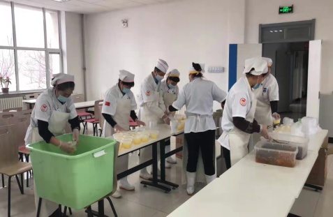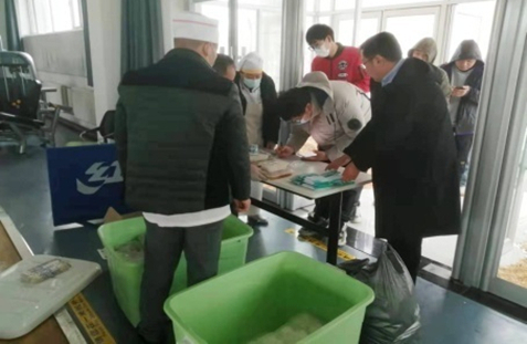 中午時分,用餐微信群里面發出用餐通知,物業人員按照統計人數把飯菜、水果送到研究生宿舍和流動公寓宿舍。姜明和蘇陽關切地詢問飯菜是否可口、是否熱乎,要求一定要搞好食堂衛生和保障食材來源安全,并設置 “臨時廚房”供簡單加工食材使用。送餐完畢,姜明和蘇陽來到研究所食堂,慰問員工食堂,對工作人員的辛勤付出表示感謝。
