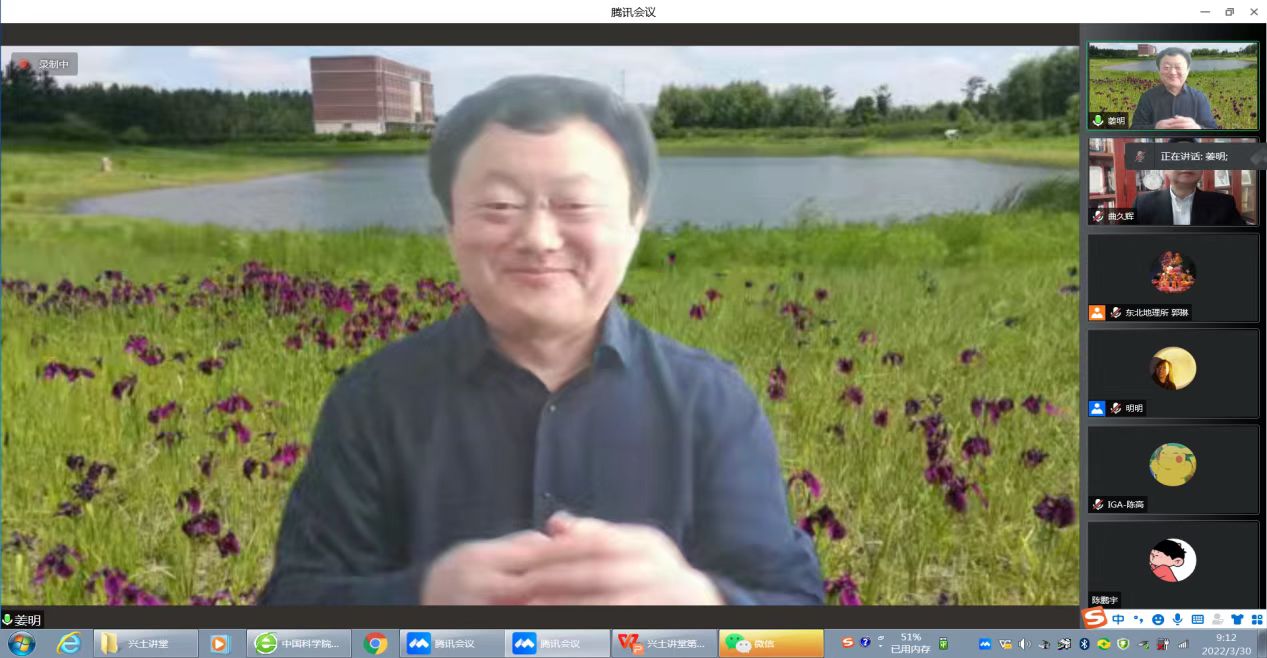 3月30日,應東北地理所的邀請,中國工程院院士曲久輝研究員作為“興土講堂”特邀嘉賓做了專題學術報告,報告題目為“長江大保護—如何深度控源?”。本期報告為“興土講堂”第四講,報告會通過騰訊會議、線上直播同步進行,參會人數近500余人,報告會由東北地理所所長姜明主持。