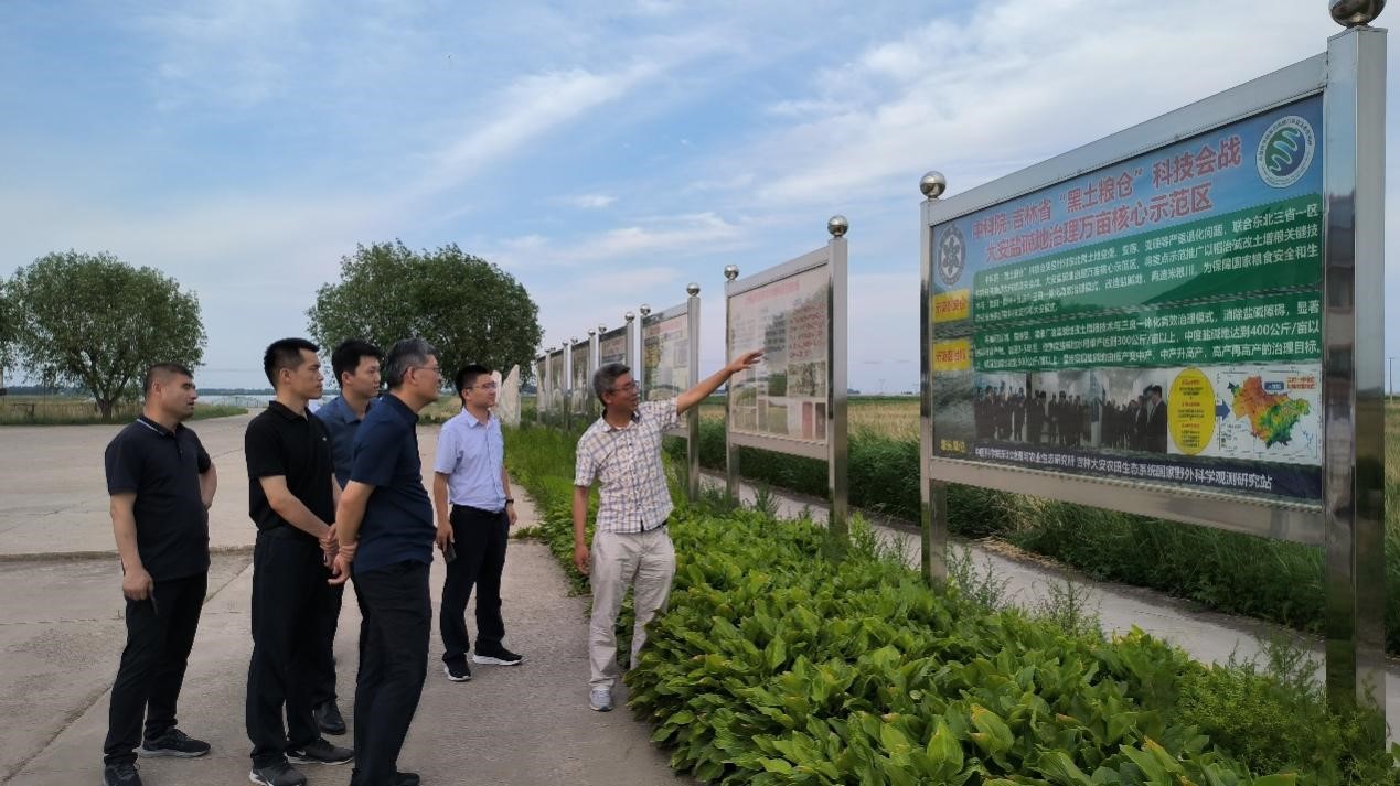 白城市委辦公室副主任匡利民、科長趙春龍、副科長孫玉鵬,大安市委辦公室主任林春達、科長劉雙赫、自然資源局土地整理中心主任王長志,山東省黃三角農高區鹽堿地綜合利用服務中心副科長鄭波,東營市委辦公室副科長韓增博、東營市農業綜合服務中心科長李巖及大安站在站科研人員參加調研。