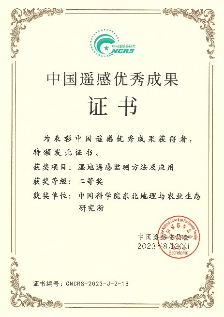 8月20日-22日,第22屆中國(guó)遙感大會(huì)在江蘇常州順利召開(kāi)。開(kāi)幕式上舉行了“2022年中國(guó)遙感優(yōu)秀成果獎(jiǎng)”頒獎(jiǎng)儀式,東北地理所地理景觀遙感學(xué)科組申報(bào)的“濕地遙感監(jiān)測(cè)方法及應(yīng)用”榮獲2022年度中國(guó)遙感優(yōu)秀成果二等獎(jiǎng),中國(guó)遙感委員會(huì)為獲獎(jiǎng)團(tuán)隊(duì)頒發(fā)了榮譽(yù)證書(shū)。