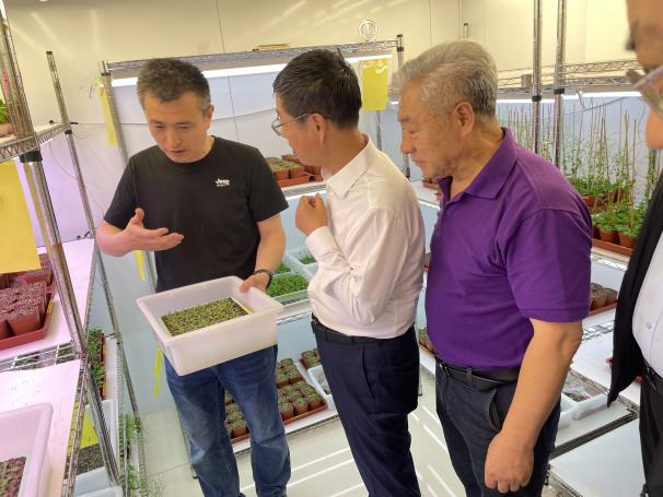 在農(nóng)業(yè)樓,馬駟驄博士介紹了黑土地保護性耕作技術及機械。大安站站長梁正偉研究員詳細介紹了鹽堿地“良田+良種+良法”三良一體化高效治理與綜合利用“大安模式”技術內(nèi)涵、自黑土糧倉科技會戰(zhàn)以來“大安模式”的技術推廣應用情況。楊帆研究員介紹了蘇打鹽堿土壤專用改良劑產(chǎn)品落地情況。李偉強研究員介紹了植物耐鹽堿機制與耐鹽堿水稻育種技術。在種質(zhì)資源樓,程志遠介紹了分子設計育種工作進展及“東生”系列大豆新品種選育與轉(zhuǎn)化工作。在研究所展館,王敏玲介紹了研究所歷史沿革、學科布局、承擔任務、科技平臺與人才隊伍等情況。齊北松博士介紹了“黑土糧倉”科技會戰(zhàn)指揮中心與智慧農(nóng)業(yè)管控平臺。