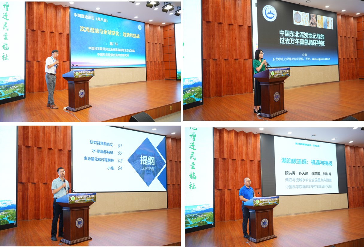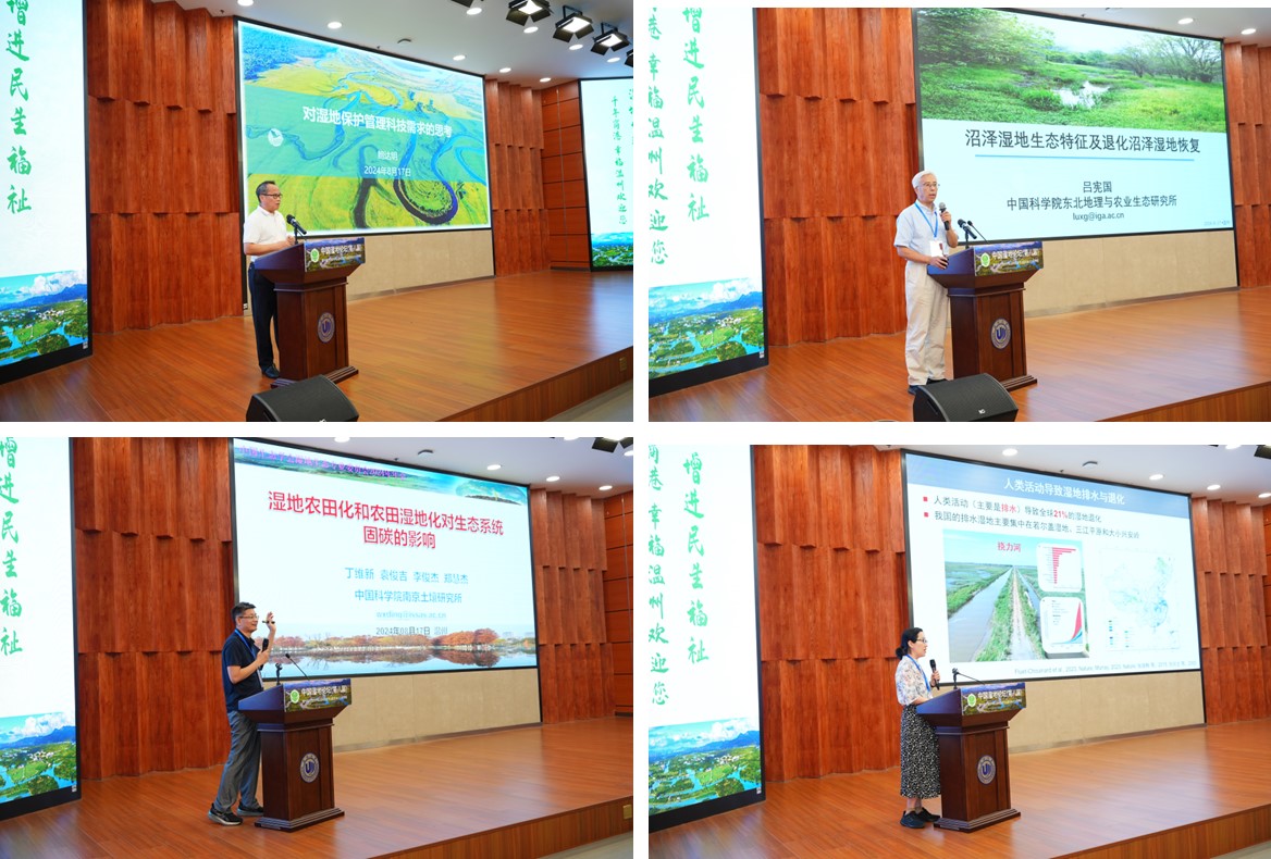 2024年8月16日至18日,“中國濕地論壇(第八屆)暨中國生態(tài)學學會濕地生態(tài)專業(yè)委員會2024年年會”在浙江溫州大學成功召開。本次大會由中國生態(tài)學學會濕地生態(tài)專業(yè)委員會、國家濕地研究中心、溫州大學主辦,溫州大學生命與環(huán)境科學學院、中國科學院東北地理與農(nóng)業(yè)生態(tài)研究所(后稱“東北地理所”)、國際濕地研究聯(lián)盟、國際濕地科學家協(xié)會中國分會等協(xié)辦。中國生態(tài)學學會濕地生態(tài)專業(yè)委員會主任、東北地理所所長姜明研究員,國家林業(yè)和草原局原一級巡視員、教授級高級工程師鮑達明,中國生態(tài)學學會副秘書長岳躍民研究員,溫州大學校長趙敏教授,東北地理所呂憲國研究員,中國科學院長春分院副院長、中國生態(tài)學會濕地生態(tài)專業(yè)委員會副主任、秘書長武海濤研究員,中國科學院植物研究所副所長馮曉娟研究員,中國科學院煙臺海岸帶研究所副所長韓廣軒研究員,東北師范大學地理科學學院院長白娥教授,中國科學院南京土壤研究所丁維新研究員,華東師范大學李秀珍研究員,天津大學李思亮教授,中國科學院南京地理與湖泊研究所段洪濤研究員等濕地領域?qū)<摇W者及研究生參加了本次盛會。本次大會共有來自60余家科研單位和高校的400余人參加會議。