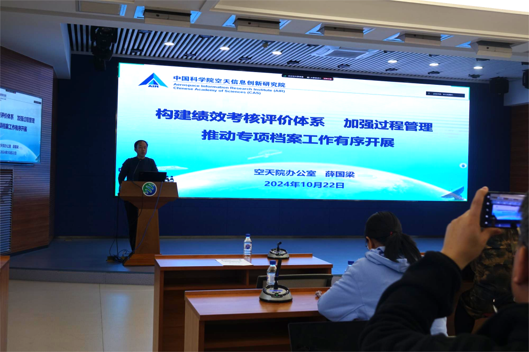 隨后,中國科學院空天信息創新研究院檔案主管薛國梁以“構建績效考核評價體系,加強過程管理,推動專項檔案工作有序開展”為主題,對專項過程管理中檔案工作的重要性、建檔流程的規范性、檔案驗收評分標準等方面進行了全面而細致的闡釋,旨在進一步提升專項檔案工作的規范化和科學化水平,確保檔案管理工作的高效有序進行。
