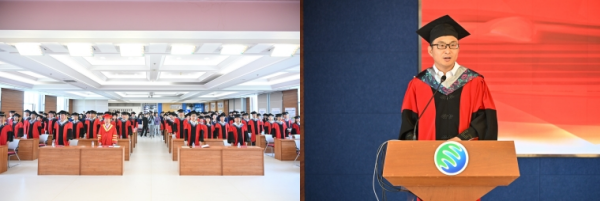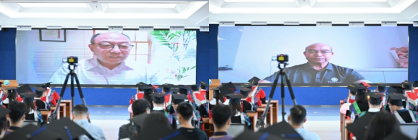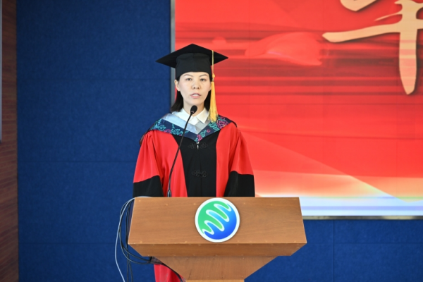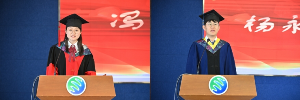 博士畢業生馮明銘、碩士畢業生楊永傳代表全體博士和碩士畢業生致畢業感言。兩位畢業生代表回顧學習生涯、分享科研感悟,感念師恩,并表達了對母校的不舍之情。經過這段求學生涯的錘煉,他們在挫敗中成長,在堅持中奮發,他們自立自強,奔赴夢想。