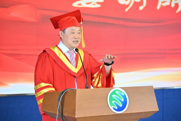 姜明在畢業典禮上致辭。他向圓滿完成學業的同學們表示誠摯的祝賀,向老師和家長朋友們致以衷心的感謝,并以“厚植黑土擔使命 賡續創新譜新篇”為主題,給同學們上了在東北地理所的最后一堂課。他希望畢業生要弘揚“黑土精神”,永葆艱苦奮斗本色,要保持“千磨萬擊還堅勁”的定力,傳承“板凳甘坐十年冷”的堅守,希望畢業生像我們培育的東生大豆一樣,把根深深扎進泥土,把枝葉高高伸向藍天;以“功成不必在我”的精神境界和“功成必定有我”的歷史擔當,在實現高水平科技自立自強的偉大實踐中貢獻青春力量。