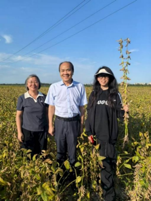 2025年8月30日,在新疆農墾科學院石河子基地,專家組對劉寶輝團隊承擔的“北方大豆高產新種質創制與應用項目中任務—早熟高產、理想株型種質創制”任務(2021YFD1201101-02)中理想株型種質“中牡260”(北豆40熟期組)小面積示范田進行測產。專家組由中國農業科學院油料作物研究所周新安研究員任組長、成員有新疆農墾科學院研究員戰勇、新疆農業科學院研究員叢花、石河子大學教授劉峰、黑龍江省農業科學院牡丹江分院研究員任海祥。大豆育種專家杜維廣研究員、國家重點研發計劃項目負責人張淑珍教授、東北地理所大豆分子育種學科組翟紅研究員等全程參加本次測產。