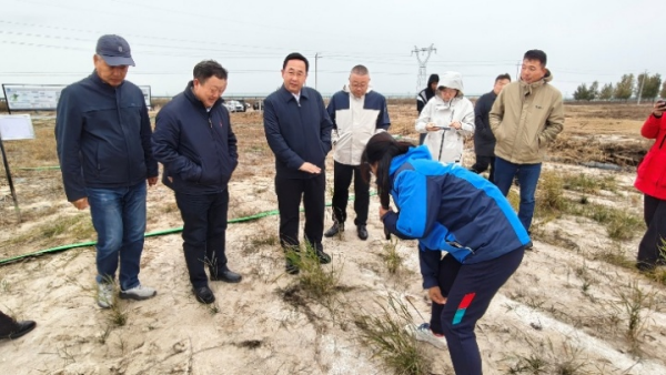在義和塔拉耕地驗(yàn)證點(diǎn),子課題負(fù)責(zé)人李強(qiáng)副研究員、孟凡立研究員和黃立華研究員分別介紹了降堿沃土技術(shù)研發(fā)與試驗(yàn)開展情況、耐鹽堿作物品種篩選與配套高效栽培技術(shù)試驗(yàn)情況、現(xiàn)用模式集成構(gòu)建及共性技術(shù)、品種落地情況等。參加觀摩活動(dòng)的領(lǐng)導(dǎo)和嘉賓共同查看了各項(xiàng)試驗(yàn)開展情況以及現(xiàn)場(chǎng)測(cè)產(chǎn)活動(dòng)。