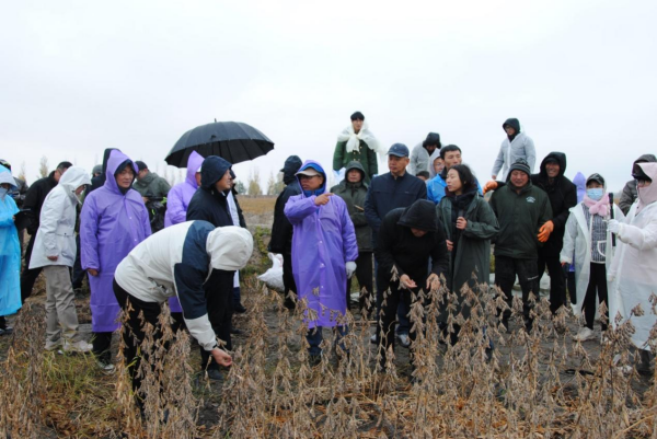 在秋日的連綿細(xì)雨中,現(xiàn)場(chǎng)測(cè)產(chǎn)和觀摩活動(dòng)同步進(jìn)行。由吉林大學(xué)植物科學(xué)學(xué)院院長(zhǎng)都興林教授等25位吉、黑、遼及內(nèi)蒙地區(qū)的領(lǐng)域內(nèi)知名專家組成了五個(gè)測(cè)產(chǎn)專家組,分別對(duì)驗(yàn)證區(qū)內(nèi)降堿沃土共性技術(shù)與個(gè)性技術(shù)、耐鹽堿作物品種篩選與配套栽培技術(shù),現(xiàn)用模式集成驗(yàn)證等試驗(yàn)進(jìn)行現(xiàn)場(chǎng)測(cè)產(chǎn),測(cè)產(chǎn)作物包括玉米、大豆、高粱等。
