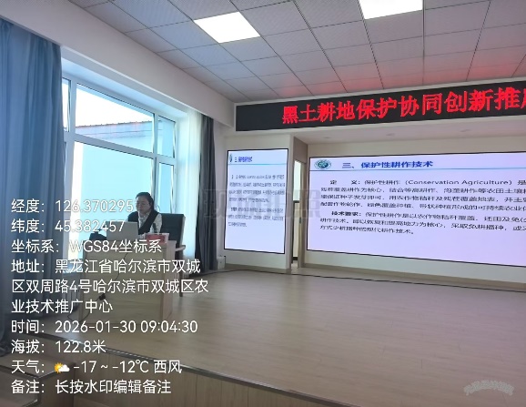 1月30日,嚴君在哈爾濱市雙城區講解了科學整地的具體方法,包括不同土壤類型下的深耕、旋耕、耙地,有機肥、生物炭及秸稈還田等操作技術要點,及如何通過合理整地方式改善土壤結構,提高土壤保水保肥能力及長效提升土壤地力。為雙城區的農技人員提供了一套科學、實用的黑土區旱地整地技術方案。