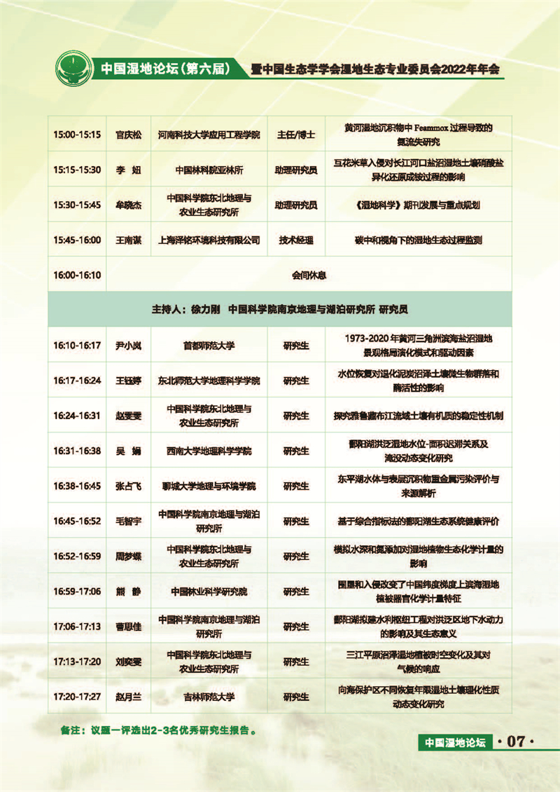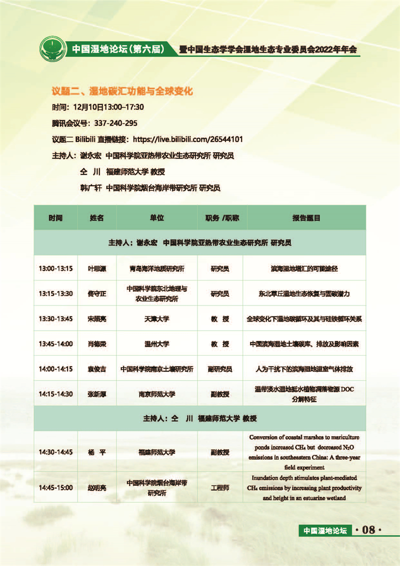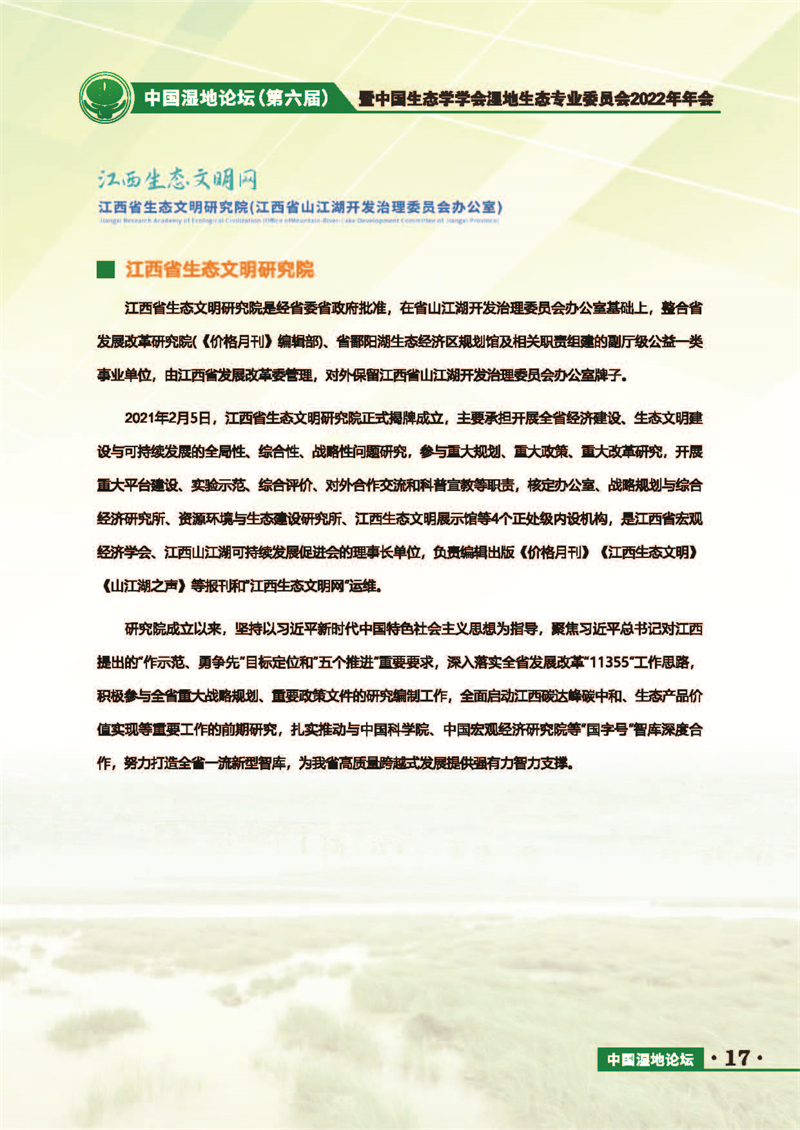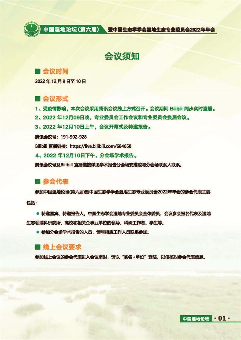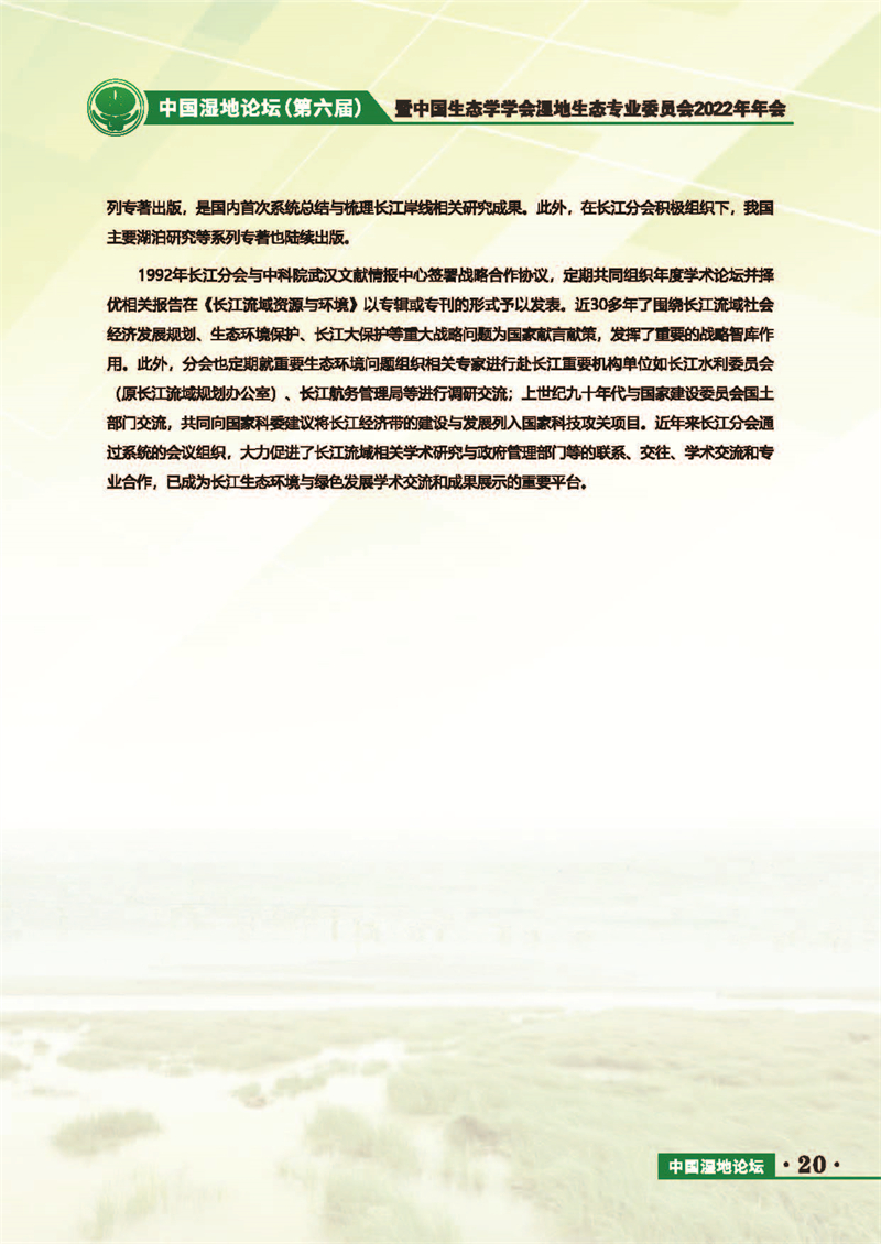 中國濕地論壇(第六屆)暨中國生態學學會濕地生態專業委員會2022年年會 會議手冊