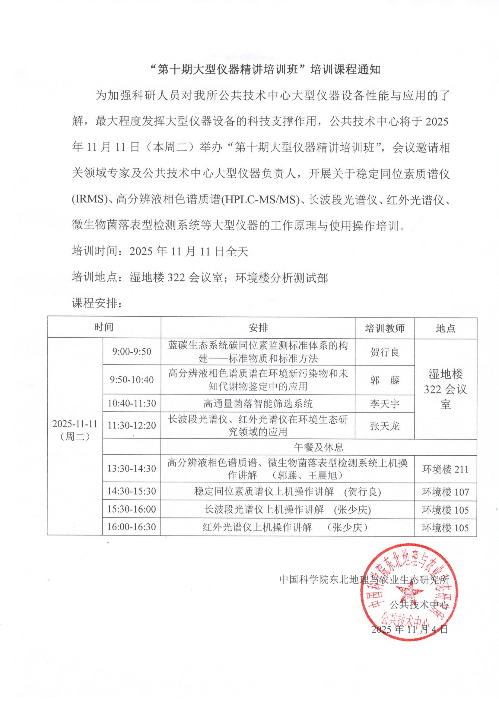 “第十期大型儀器精講培訓班”培訓課程通知