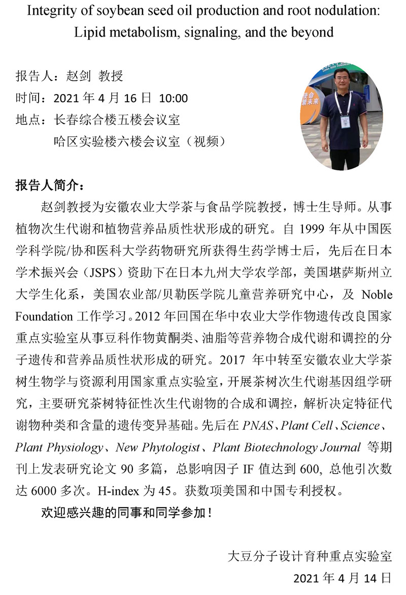 來源:大豆分子設(shè)計(jì)育種重點(diǎn)實(shí)驗(yàn)室 | 發(fā)布時(shí)間:2021-04-14 | 【 大 中 小 】