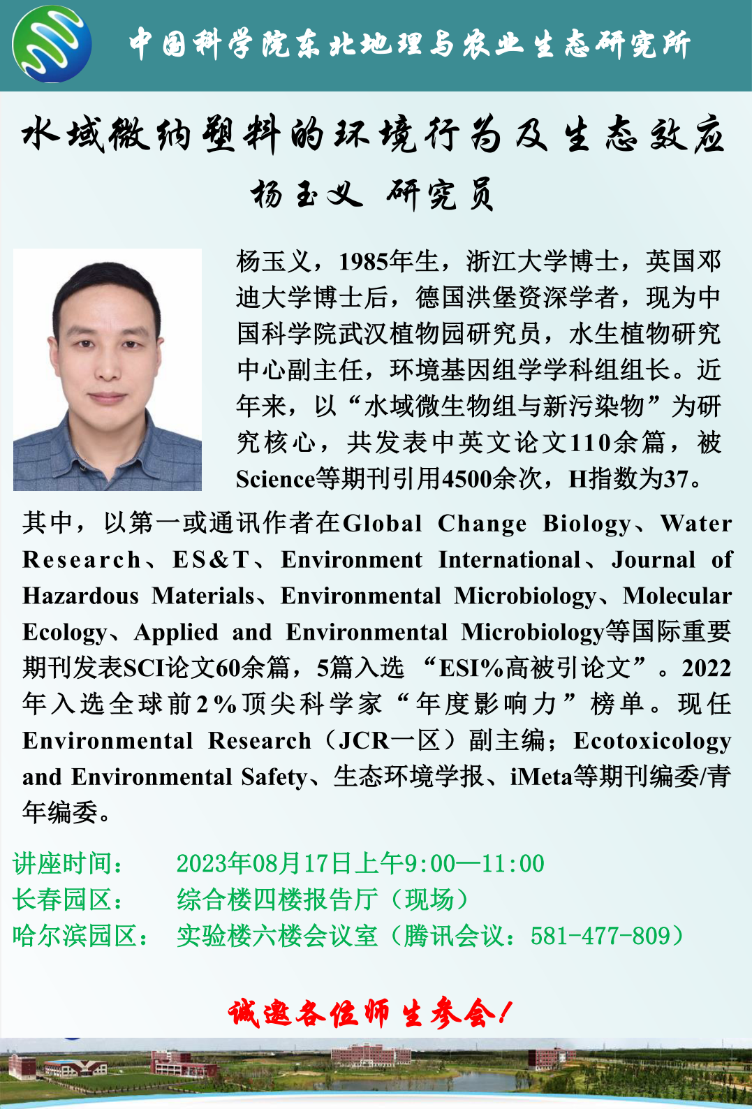 水域微納塑料的環(huán)境行為及生態(tài)效應-楊玉義 研究員